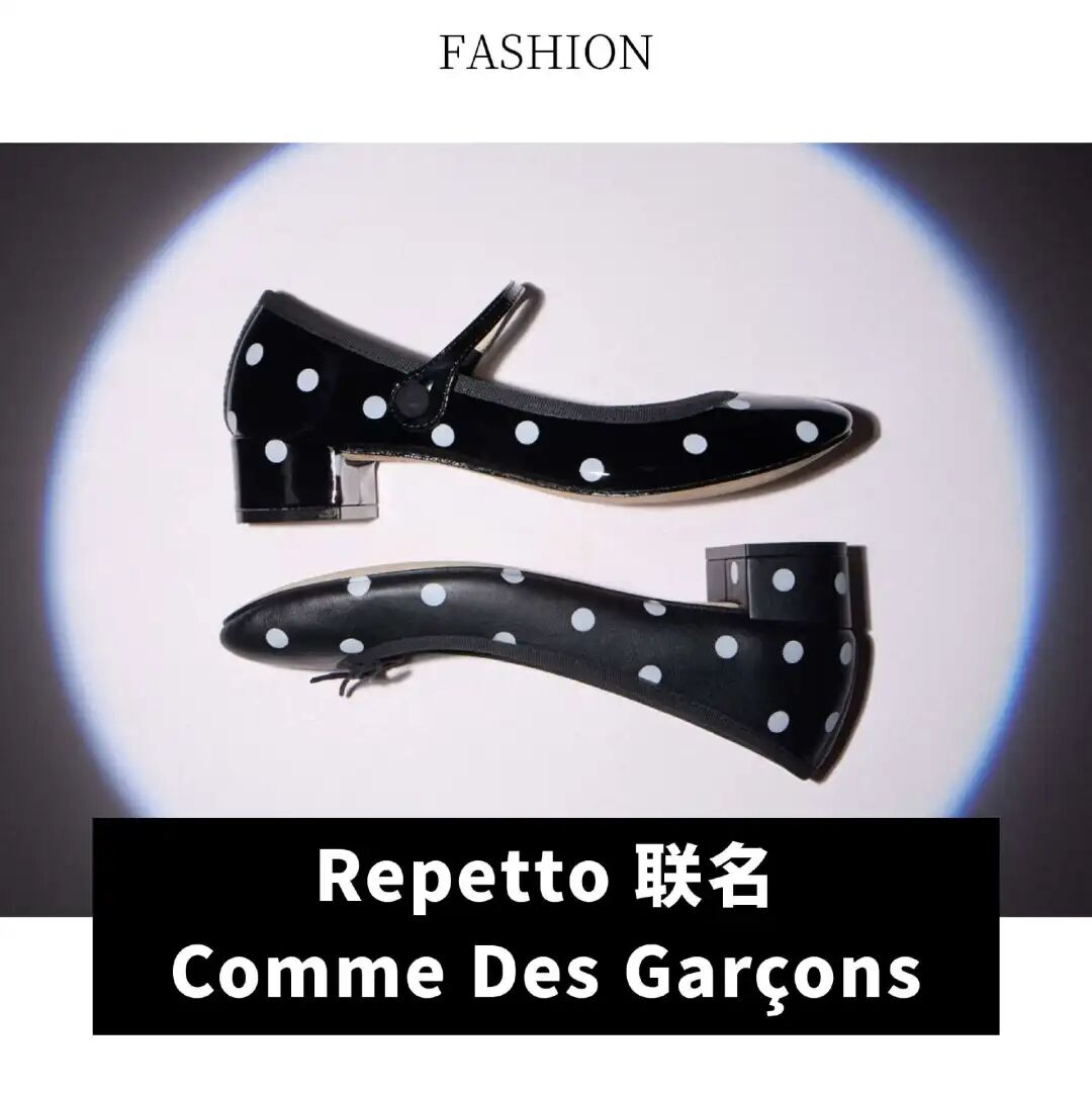 2025 年 9 月,Repetto 与 Comme Des Garçons 在首次合作二十年后,再度携手开启一场无畏而独特的联名合作。两大品牌秉持对创作美学与精湛工艺的追求,延续传统工艺与艺术革新之间的对话,共同推出两款限量的鞋款:CAMILLE 波点芭蕾低跟鞋与 ROSE 波点玛丽珍鞋。在法国的独家工坊中,Repetto 运用源自 1947 年的传统“缝合反转”制作工艺,在鞋款成型后通过水转印技术,将 Comme Des Garçons 品牌标志性的波点图案覆于鞋面之上。Repetto 经典优雅与 Comme Des Garçons 视觉革新的灵感融合,将每一双鞋都打造成为独一无二的艺术品。