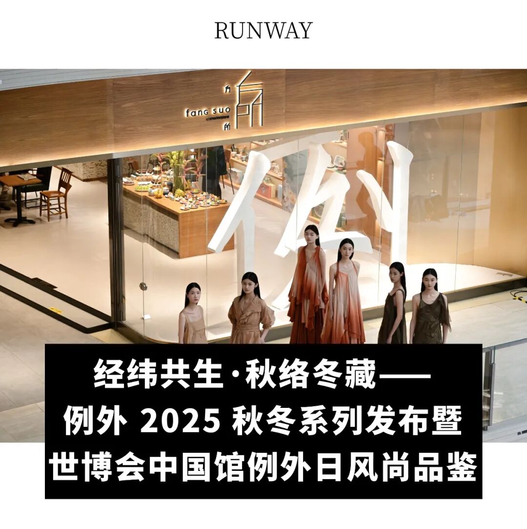 9 月 27 日,“经纬共生·秋络冬藏——例外 2025 秋冬系列发布暨世博会中国馆例外日风尚品鉴”于上海尚嘉中心举行,活动将 Exceptio 例外于 2025 世博会中国馆展现的东方美学绵延至沪。新季系列凝练自然艺术意象,于极致简约中沉淀超越潮流的从容风骨。传统的隽永内核与摩登的视觉语言,古典气息与实用精神交织,开启全新美学维度,探寻根植于现代生活的东方风貌。