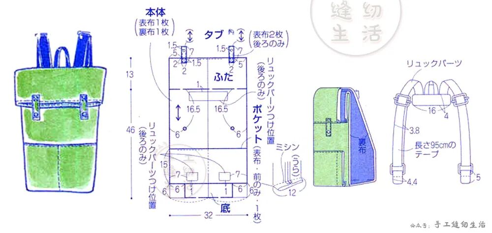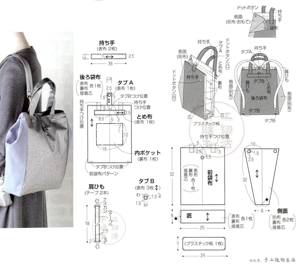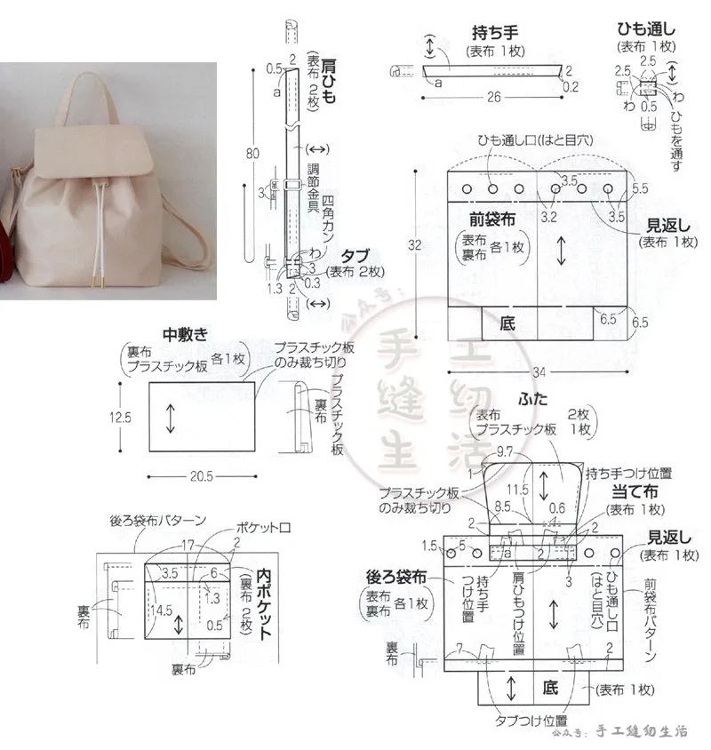 13款手工双肩包结构纸样裁剪图/制作教程!