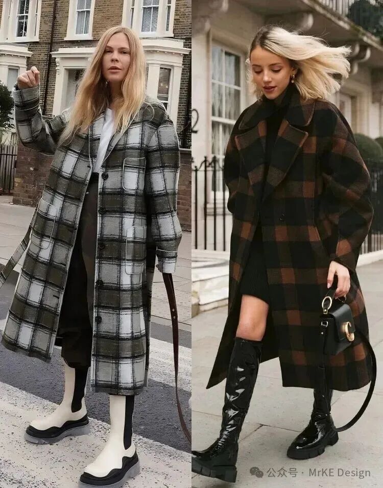 一件格纹大衣,就是秋冬街头的绝对主角。