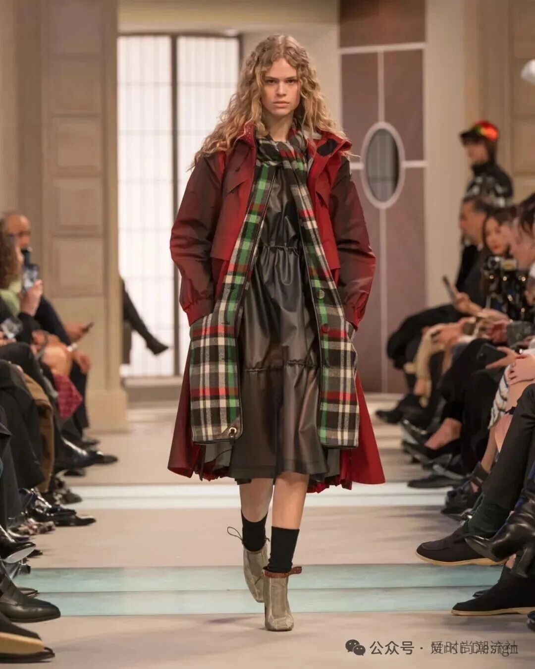 于是,衬衫“借用”了男士的衣橱,领带滑落于超大号衬衫之下,半身裙与运动T恤相配,鞋子则骄傲地展现着岁月的痕迹,搭配着并不追求完美对称的袜子。这种“凌乱”并非疏忽,而是一种视觉语言:设计师通过层叠的方式,将不同时代和风格的衣橱单品组合在一起,讲述着一个故事。