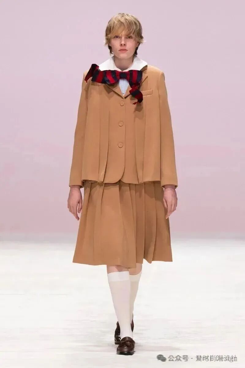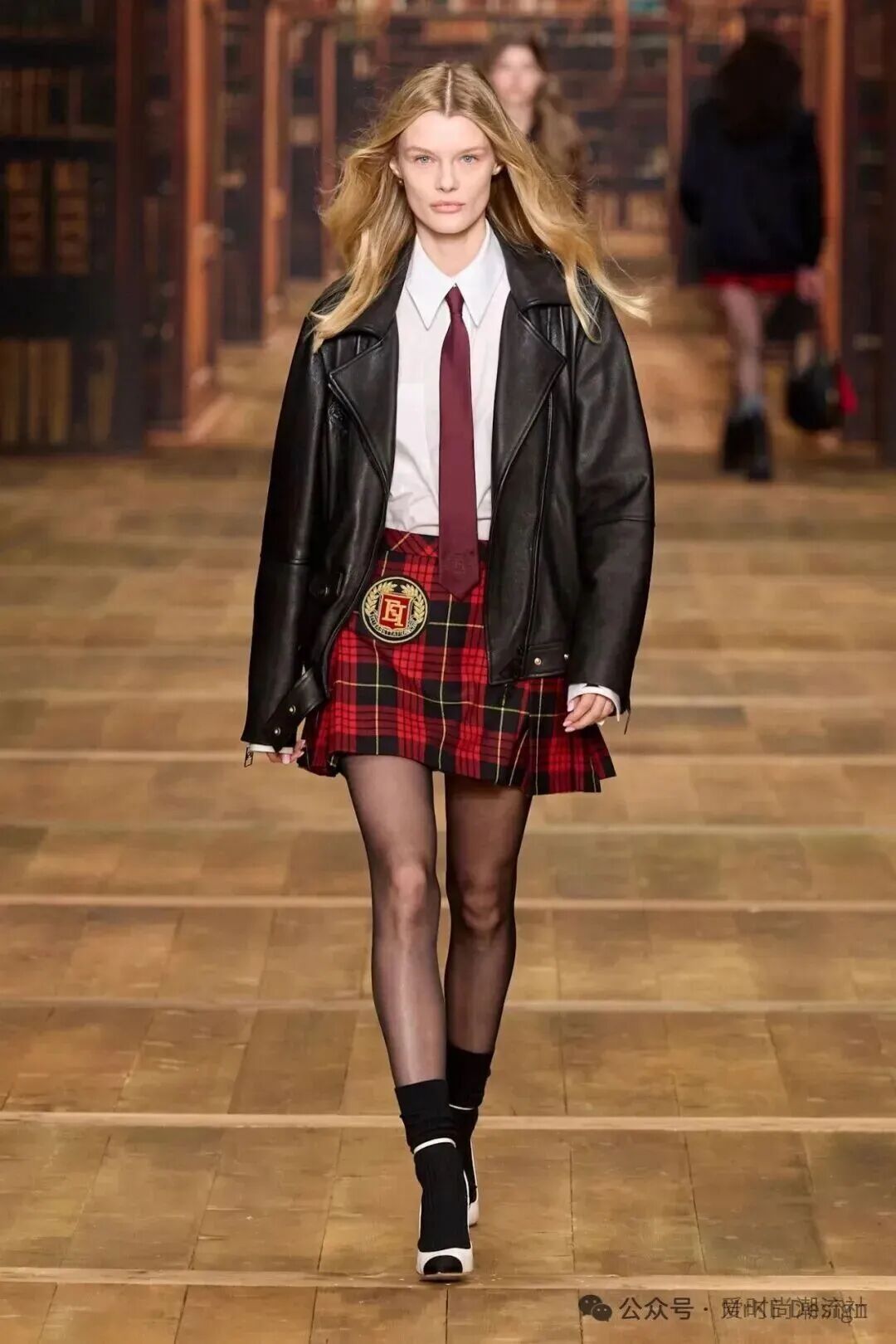 学院风回归,并融入现代元素。虽然盾徽毛衣、百褶裙和棒球条纹曾一度成为时尚的标杆,但如今的时尚正在重塑这些造型,打破所有常规。其成果便是90年代学院风的回归,它复兴了过去的美学,将经典的高中廓形与朋克风格以及轻松自由的创意再利用融为一体。