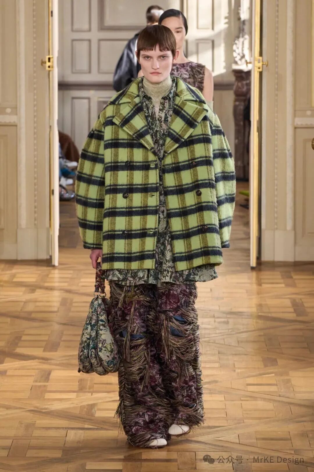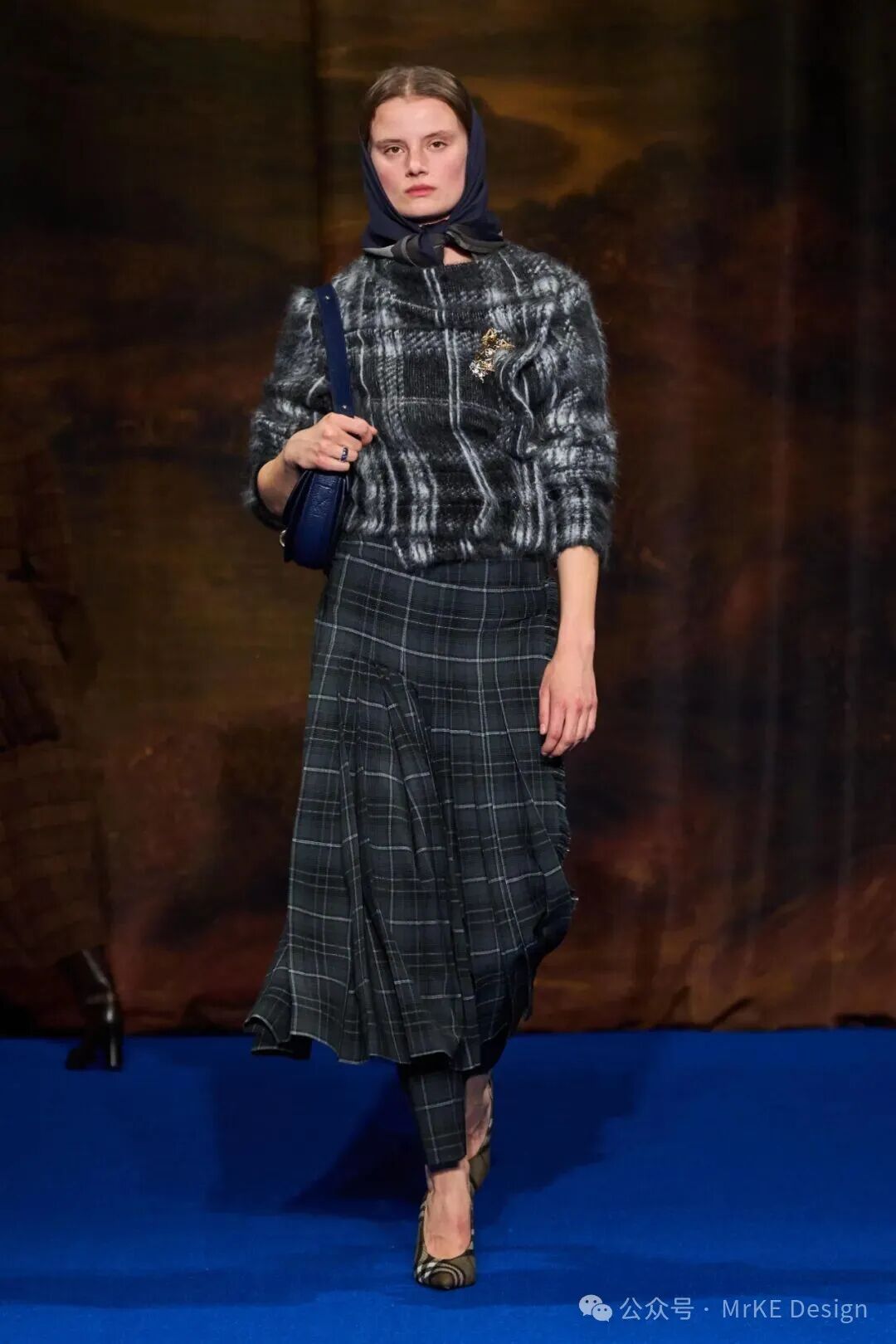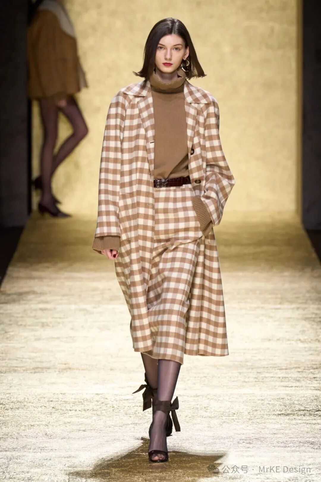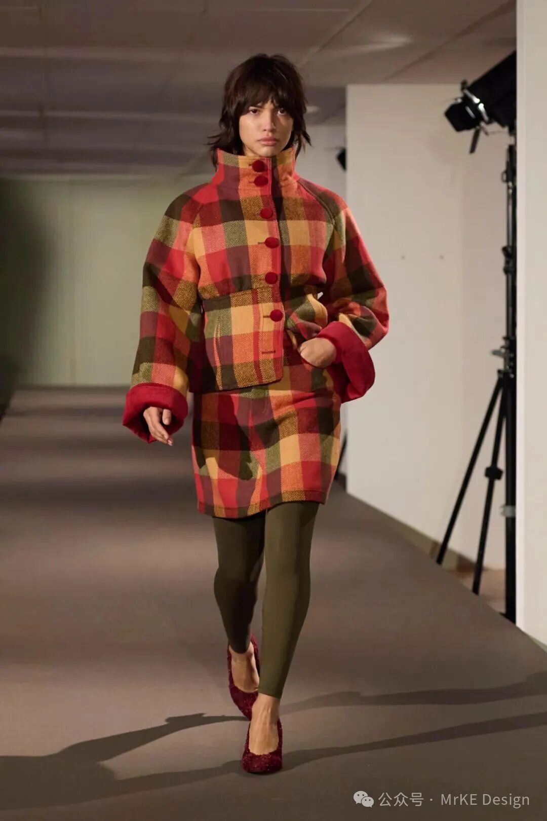 传统格纹在25/26秋冬以更具重量感和质感的方式回归主流。经典的苏格兰格、猎装格与棋盘格成为设计基础,通过解构拼接、比例放大以及错位排列等方式被重新演绎,呈现出现代摩登与复古乡村并存的视觉效果。