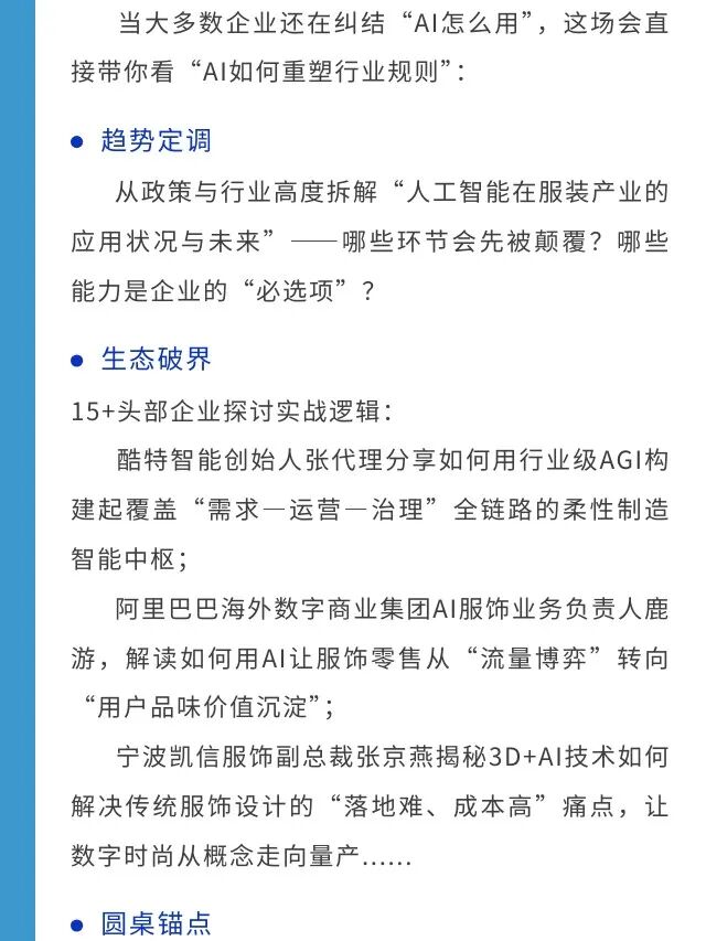 - 官宣!2025中国服装产业AI技术应用大会日程发布,用AI之光点亮时尚未来