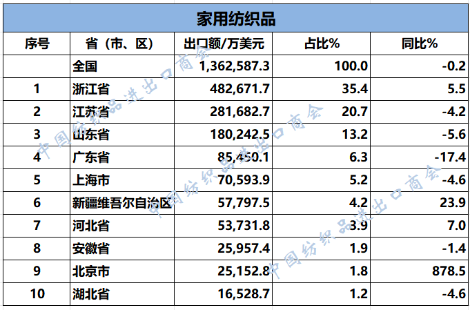 2025年1-8月纺织服装类重点商品出口前十名的省(市、区)