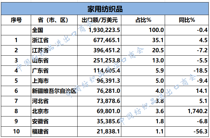 2025年1-11月纺织服装重点省市出口概况