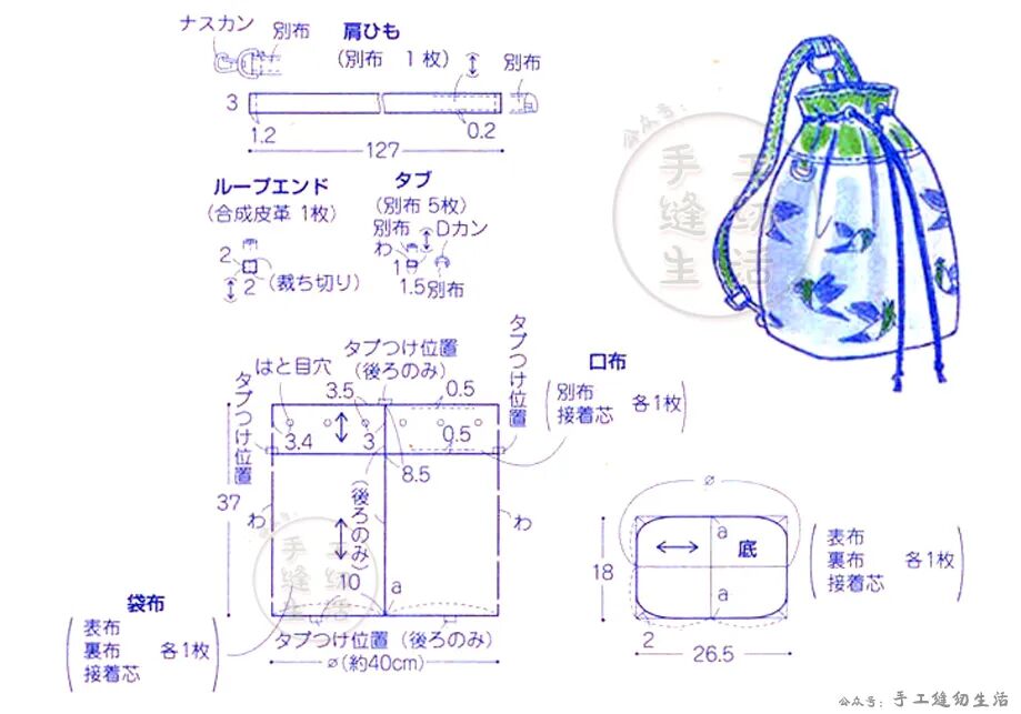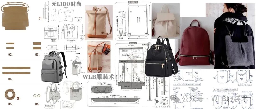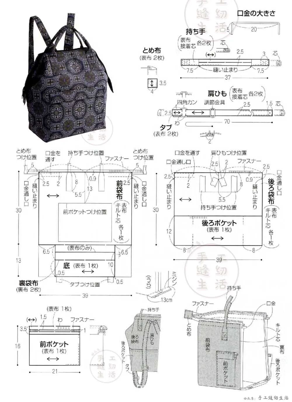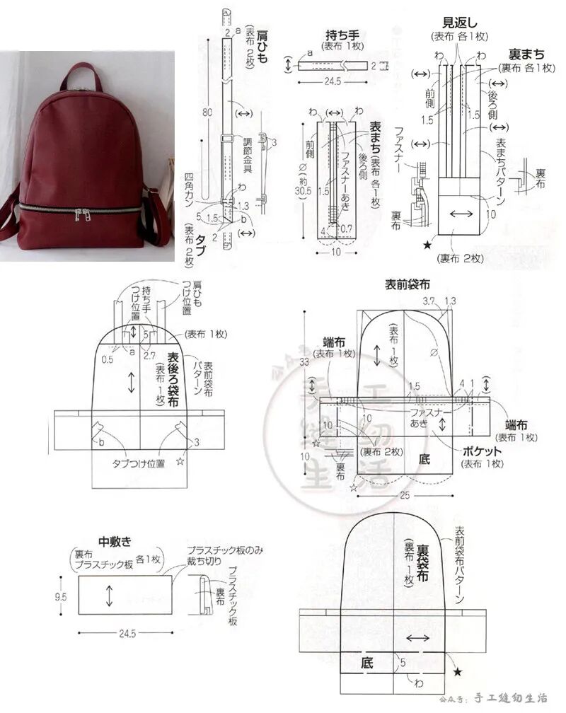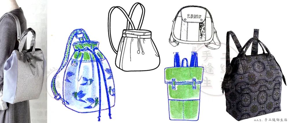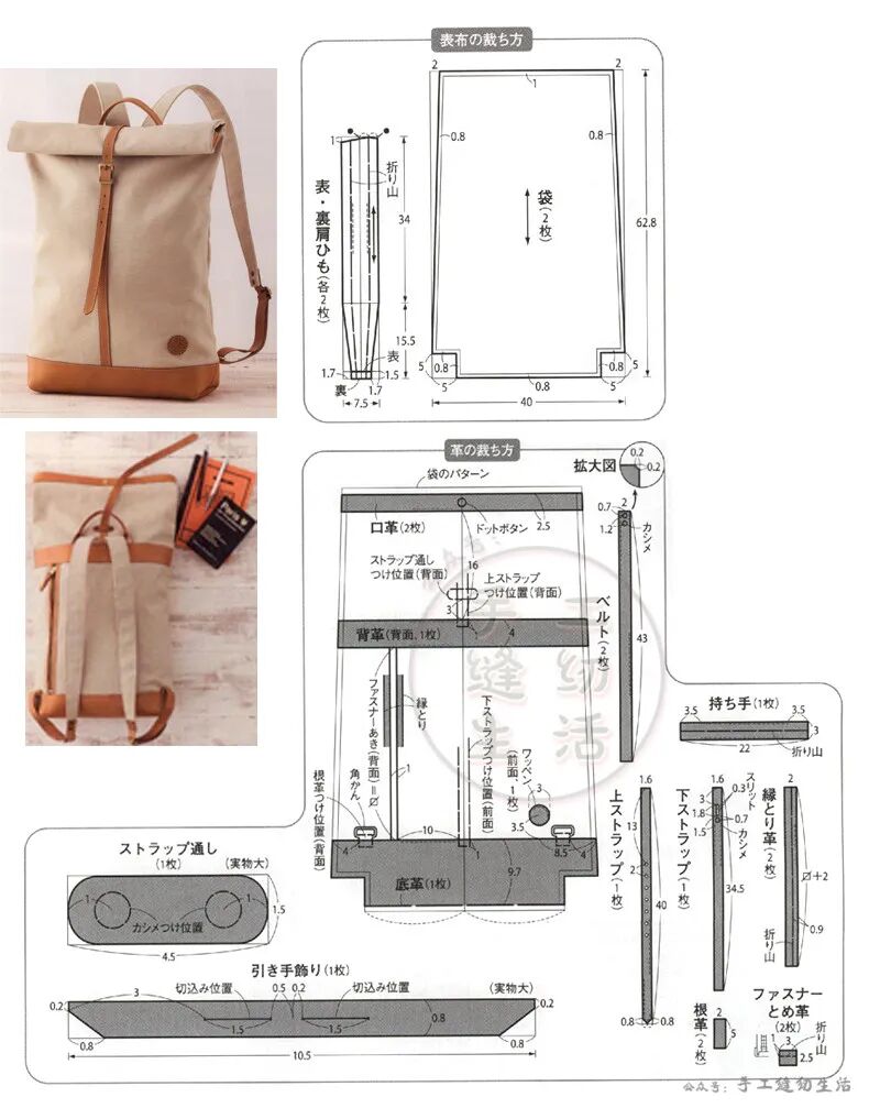 13款手工双肩包结构纸样裁剪图/制作教程!