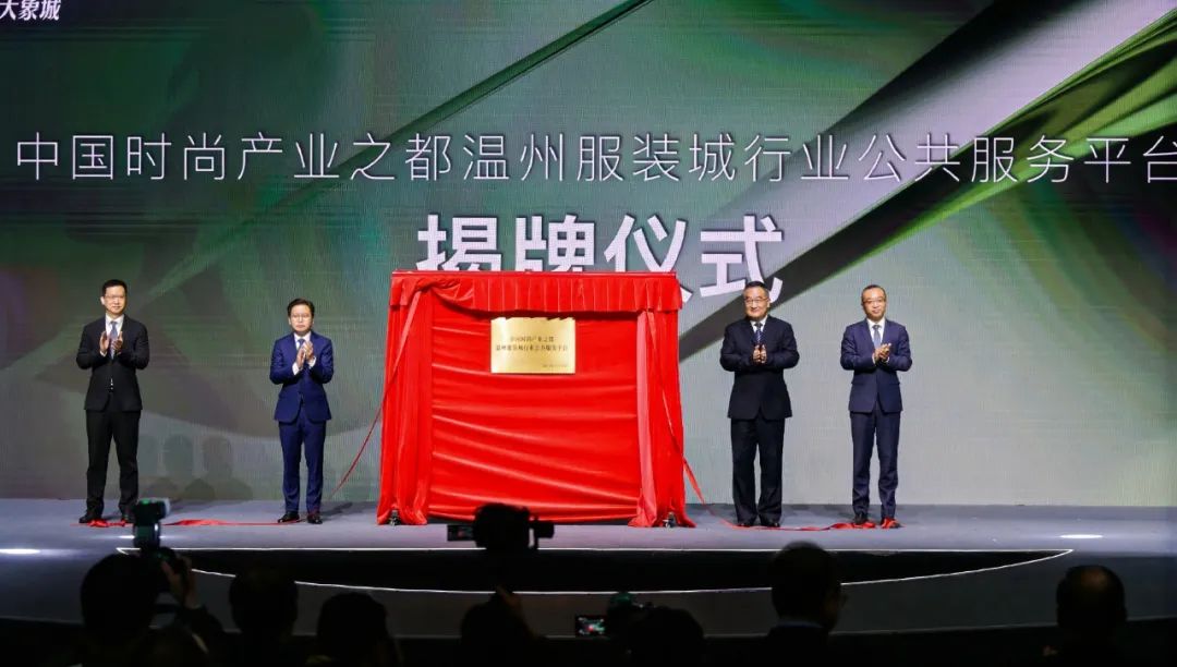 随后,中国服装协会专职副会长、中国服装协会定制专委会主任李昕,市人大常委会党组成员、副主任、市服装产业链副链长张洪国,市经信局局长陈胜军,瓯海区委常委、宣传部长、区服装产业链链长胡晓立共同为中国时尚产业之都温州服装城行业公共服务平台揭牌,该平台的建立将进一步推动温州时尚产业的转型升级和高质量发展。