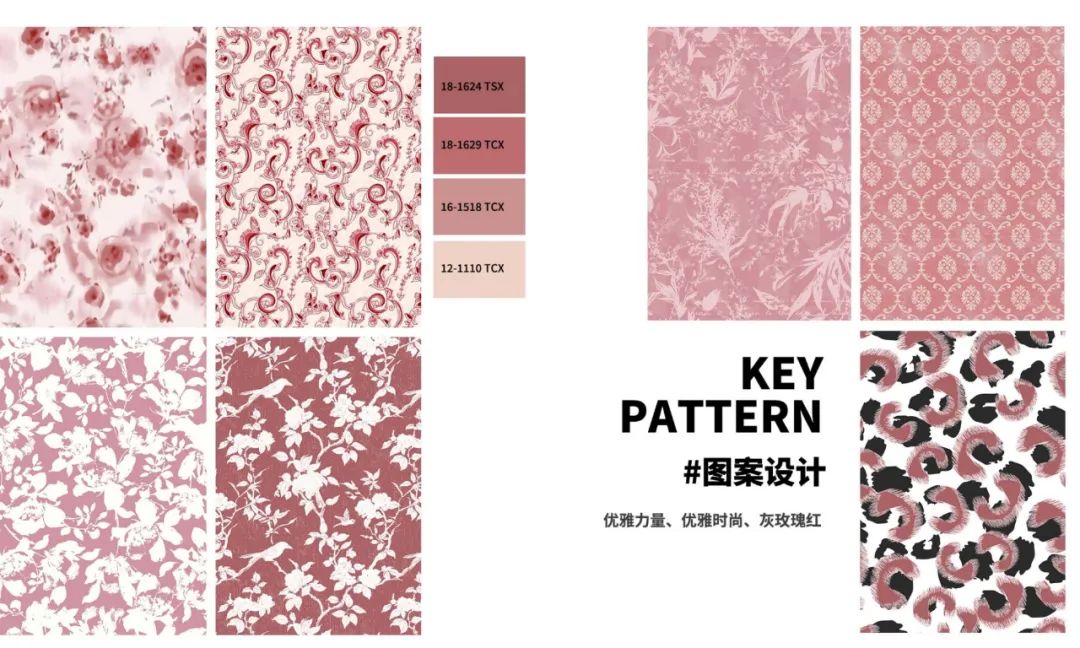 正如玫瑰的娇艳,灰玫瑰红色赋予了服装作品神秘且吸引人的魅力,让佩戴者在展现个人风采的同时,流露出从容不迫的气场。