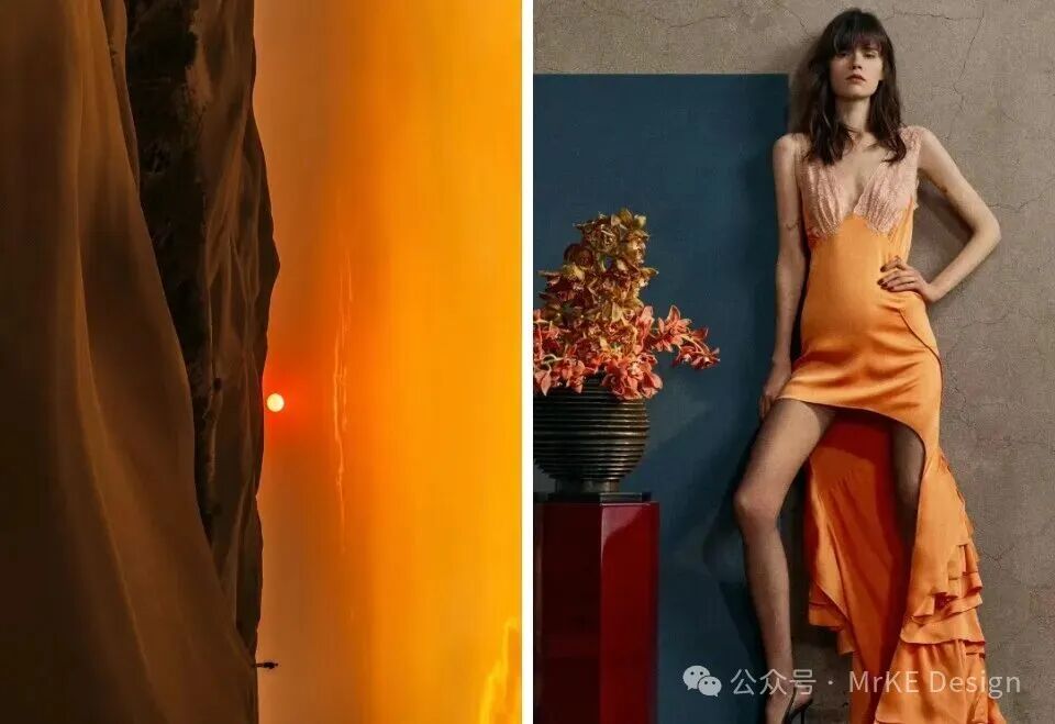 落日棕橘也是最有秋日氛围感的颜色,如母亲般温暖的怀抱,带来被包裹的安全感。