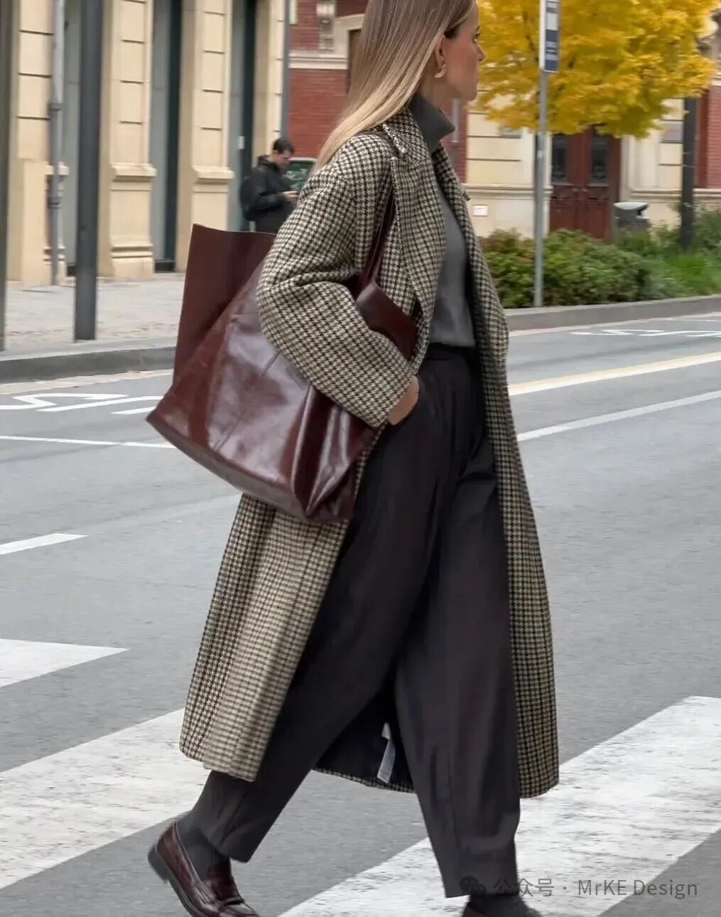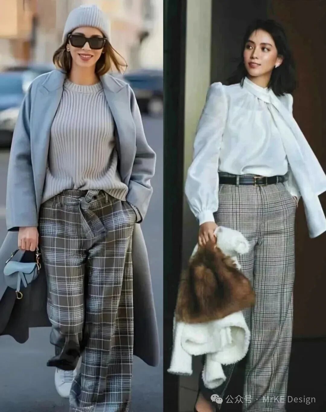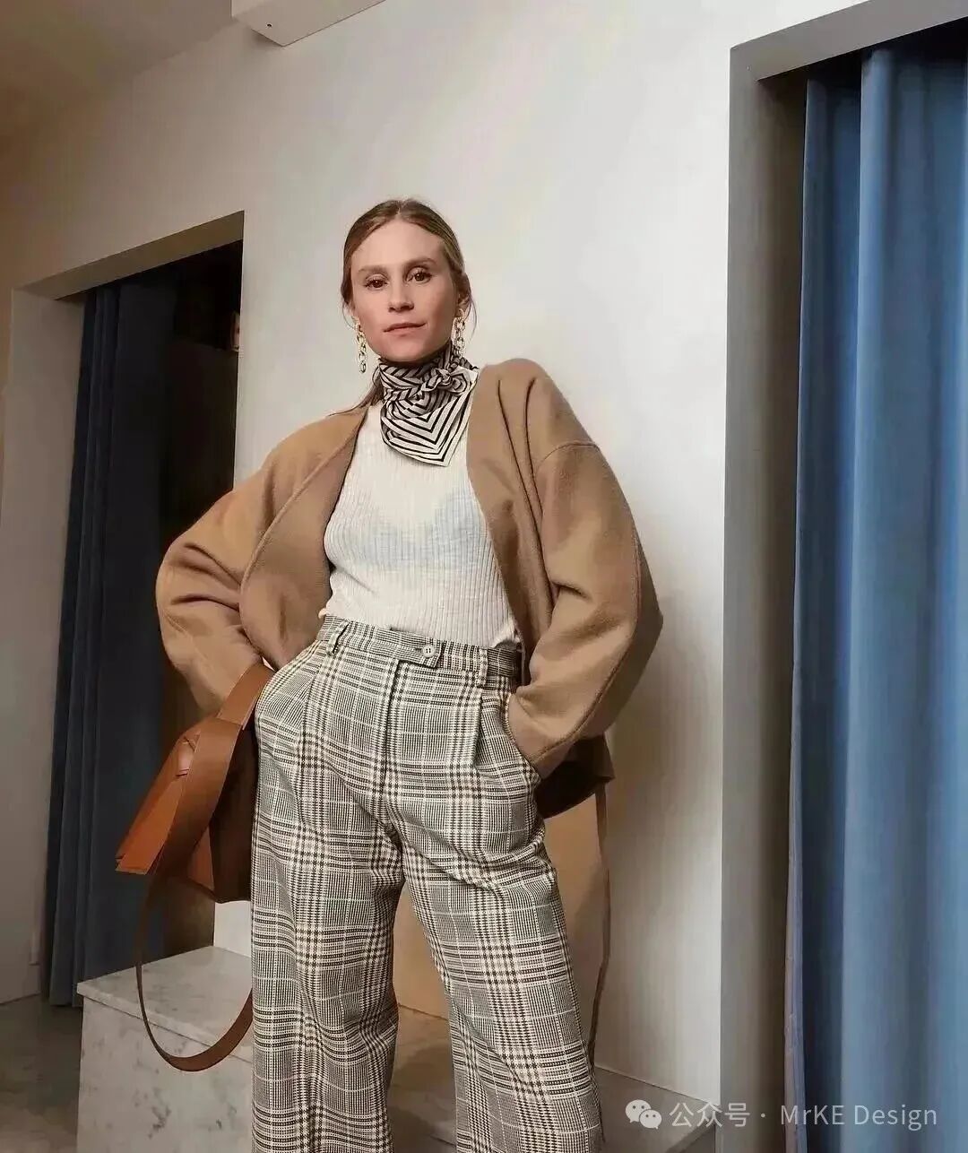 风格: 最显大气和高级的格纹之一,非常适合通勤,能打破纯色的沉闷,又不会过于花哨。
