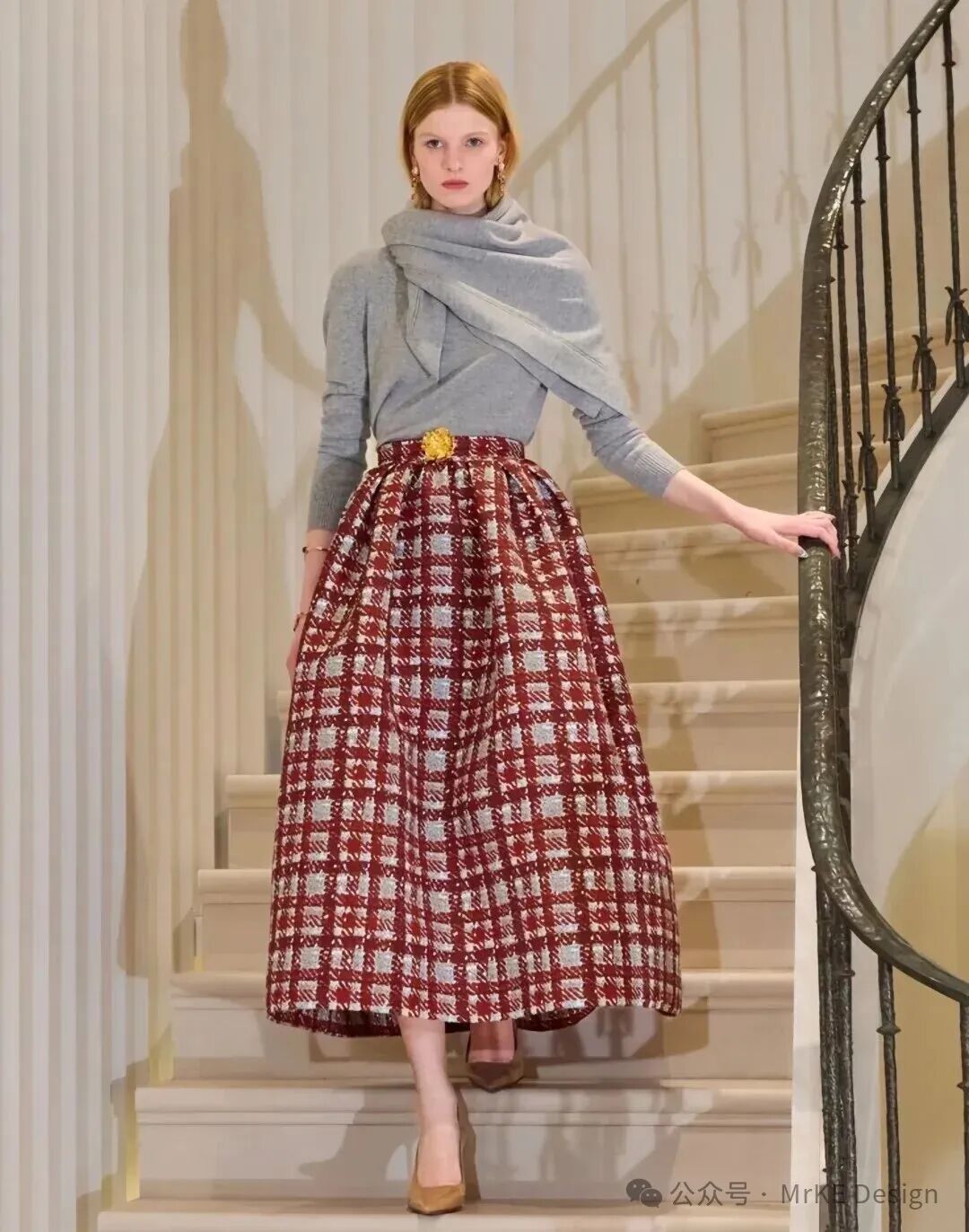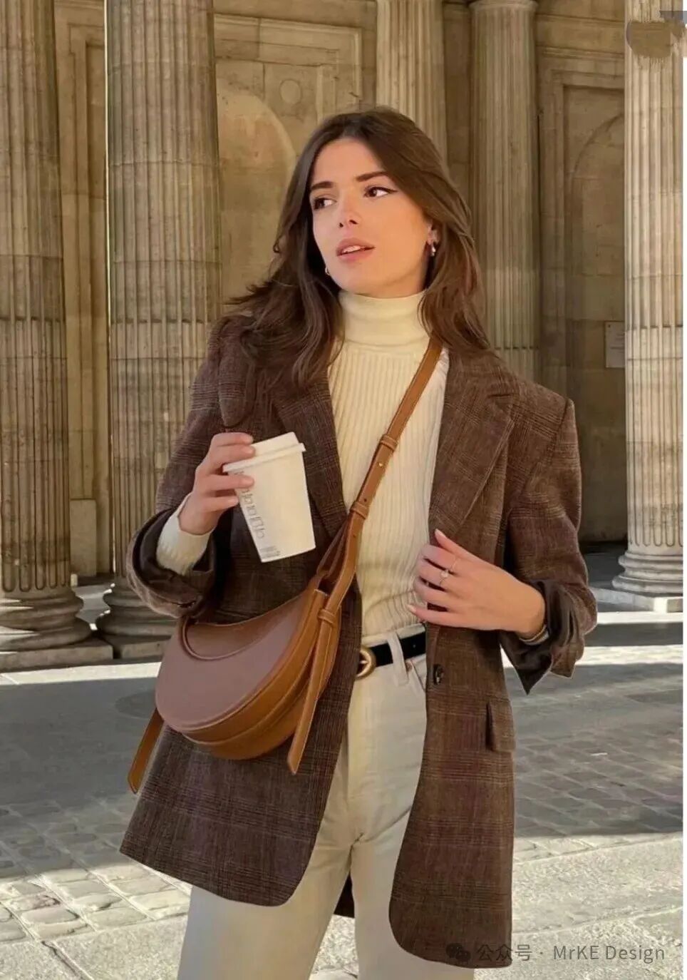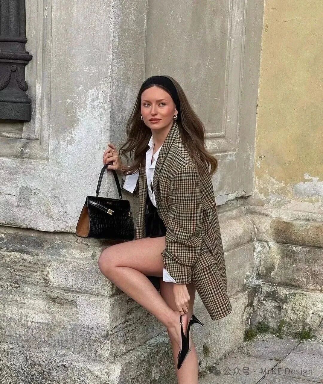 风格: 最显大气和高级的格纹之一,非常适合通勤,能打破纯色的沉闷,又不会过于花哨。