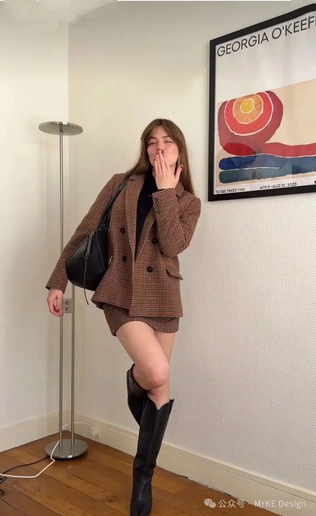 风格: 小面积的千鸟格精致,大面积的则非常显气场,是打造“老钱风”的利器。