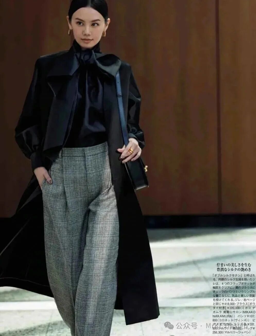 全身黑: 永不出错的搭配,用黑色的“收缩感”和“沉稳感”来衬托格纹大衣,高级感满分。