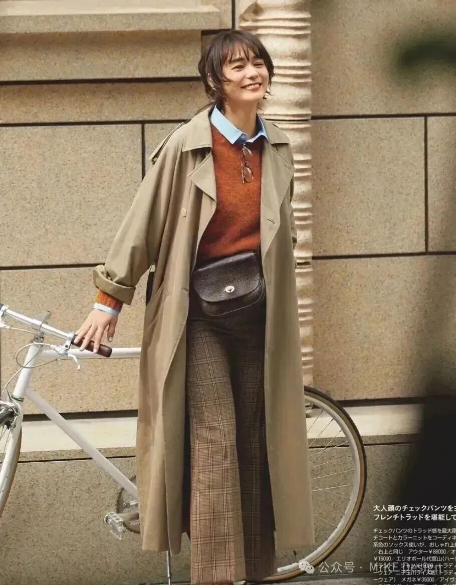 平衡法则: 全身有且只有一个重点。穿了格纹外套,包包、鞋子就选纯色;穿了格纹裙,上衣和外套就保持简约。
