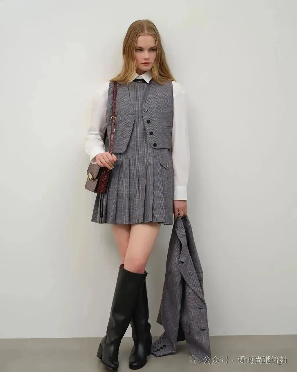 学院风回归,并融入现代元素。虽然盾徽毛衣、百褶裙和棒球条纹曾一度成为时尚的标杆,但如今的时尚正在重塑这些造型,打破所有常规。其成果便是90年代学院风的回归,它复兴了过去的美学,将经典的高中廓形与朋克风格以及轻松自由的创意再利用融为一体。
