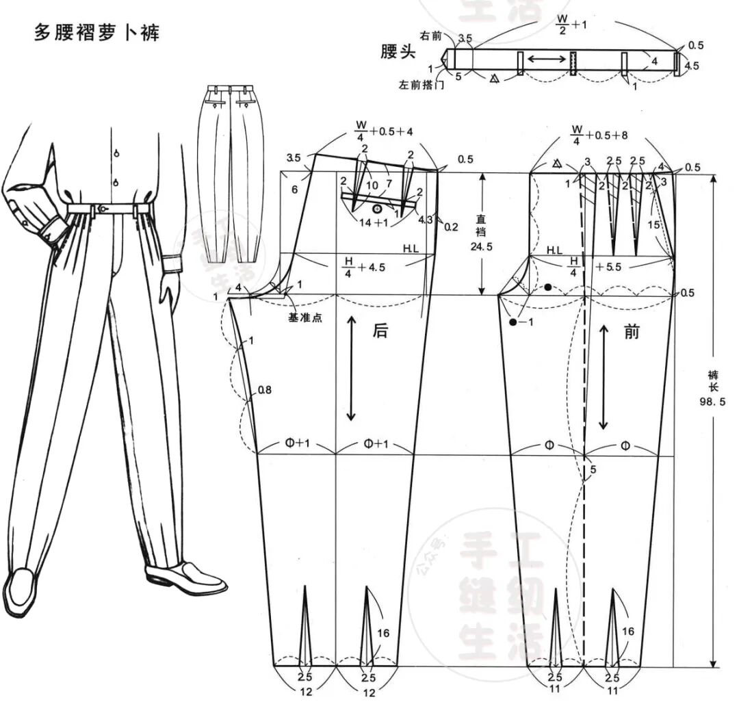 12款-男裤装原型的立体结构图!