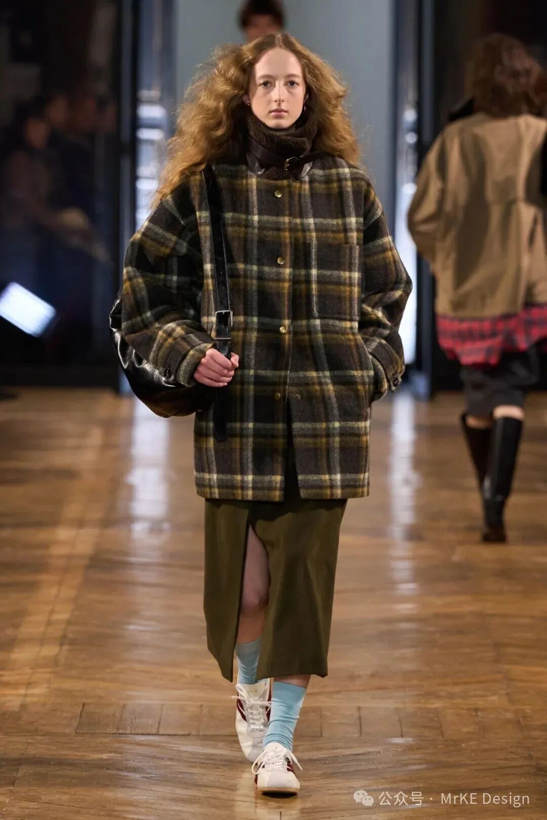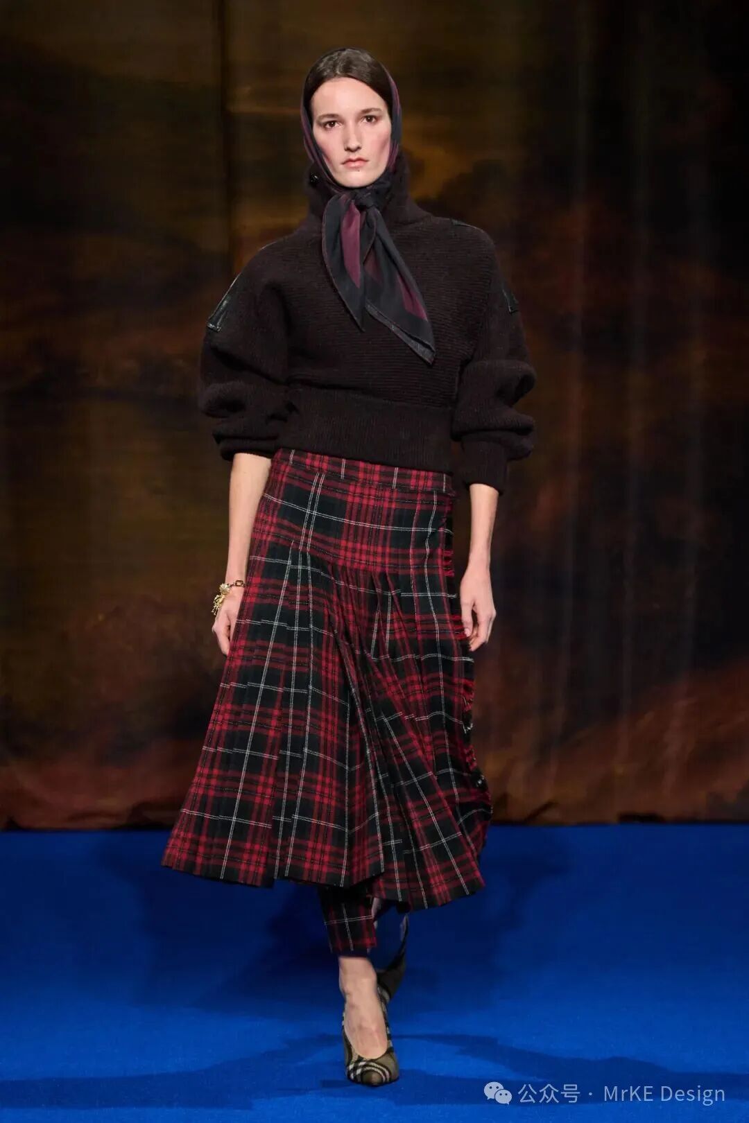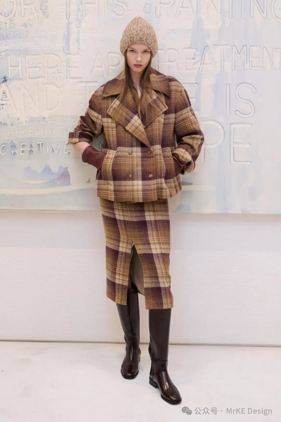 传统格纹在25/26秋冬以更具重量感和质感的方式回归主流。经典的苏格兰格、猎装格与棋盘格成为设计基础,通过解构拼接、比例放大以及错位排列等方式被重新演绎,呈现出现代摩登与复古乡村并存的视觉效果。