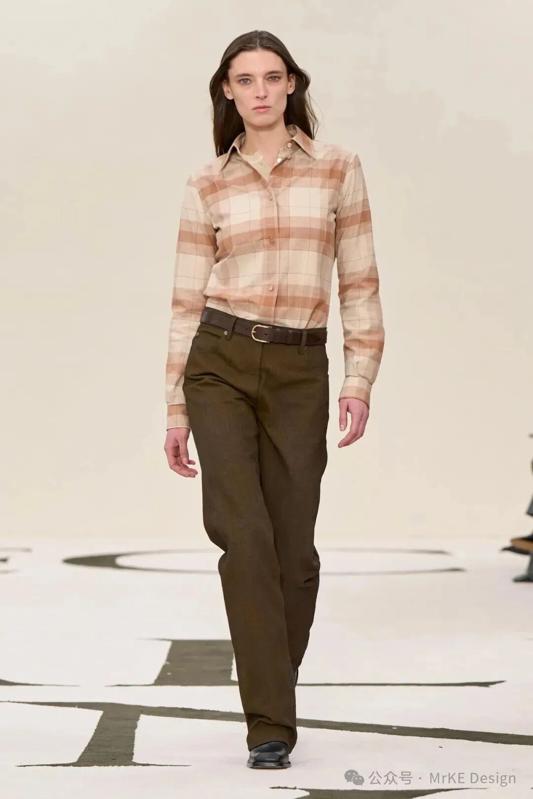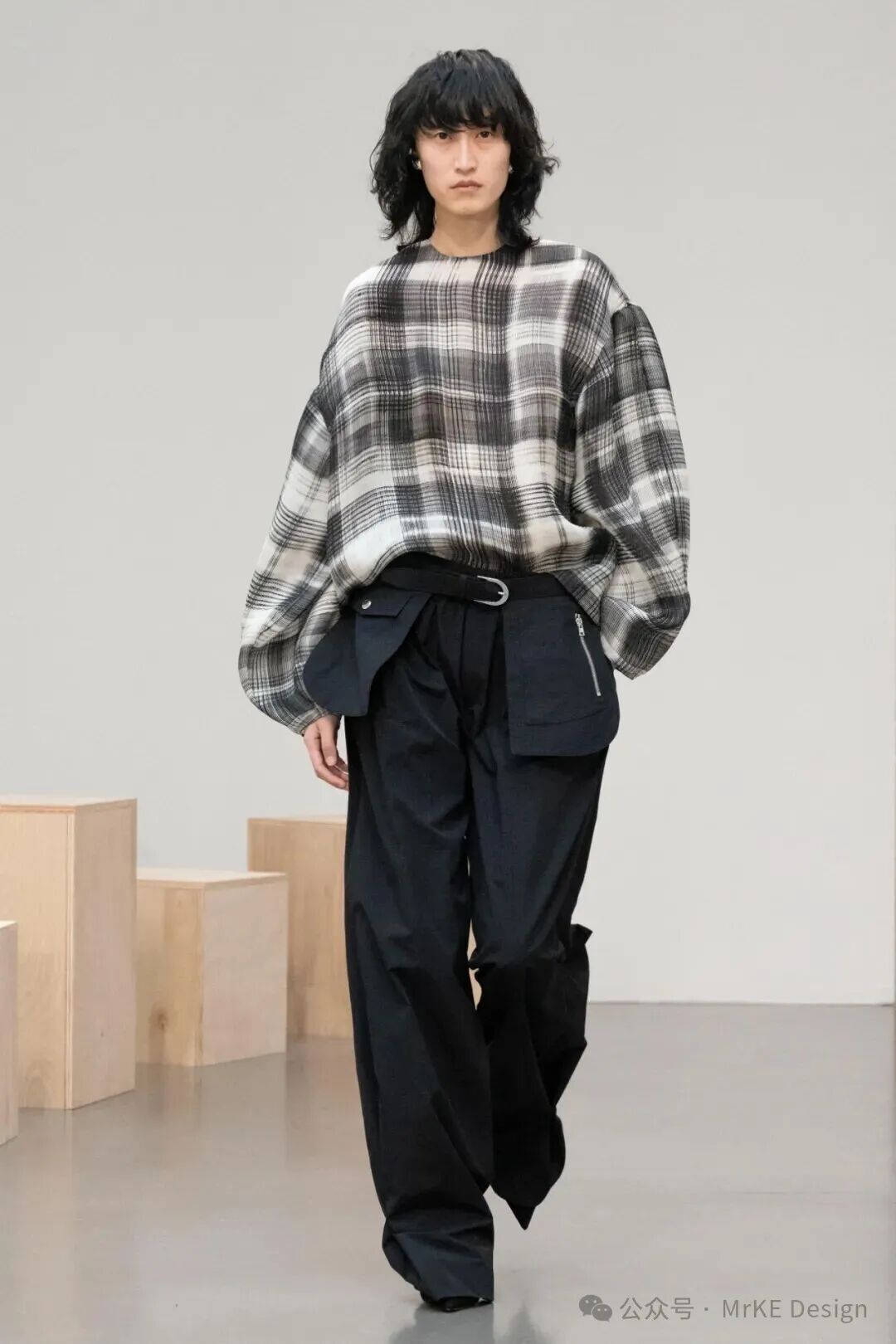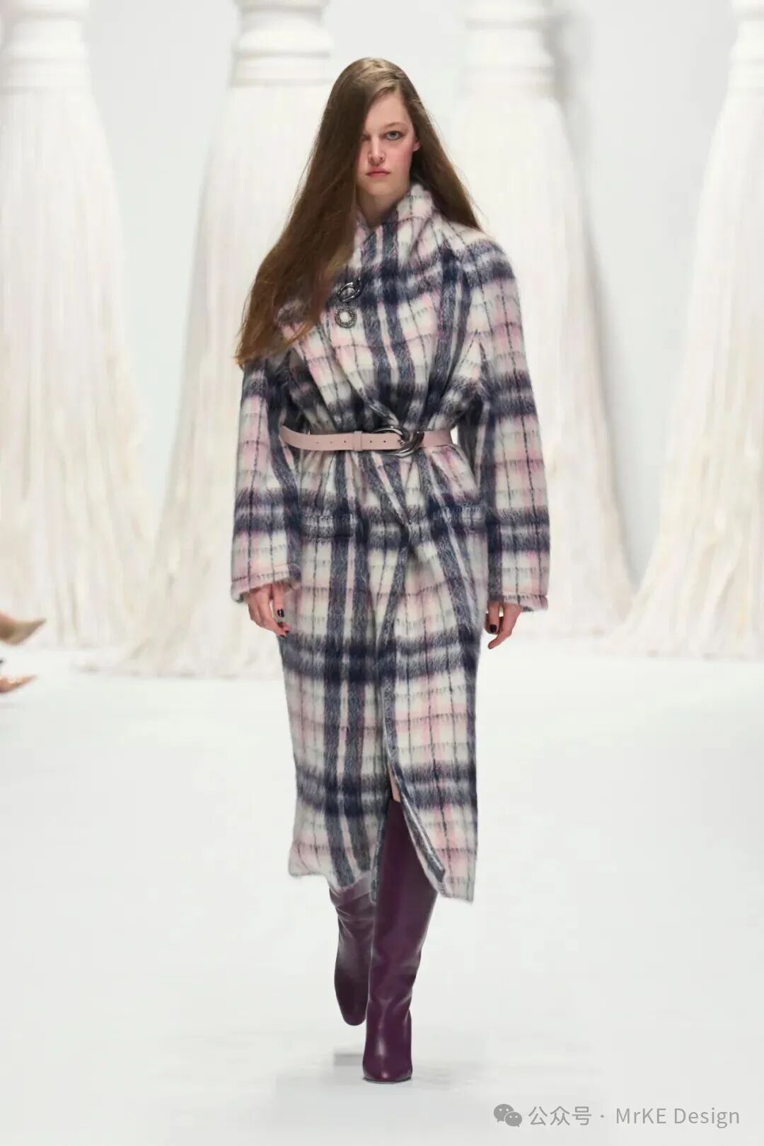 传统格纹在25/26秋冬以更具重量感和质感的方式回归主流。经典的苏格兰格、猎装格与棋盘格成为设计基础,通过解构拼接、比例放大以及错位排列等方式被重新演绎,呈现出现代摩登与复古乡村并存的视觉效果。