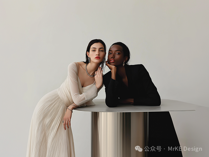 白色与黑色的阴柔之美必然交融,再以魅惑的唇膏红点缀。复古酒红、蓝绿色、闪耀的石墨灰、璀璨的灰色以及银色缎面金属光泽,更添几分迷人魅力。