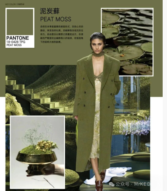 泥炭藓色自然肌理与复古质感的双向奔赴 2027秋冬,以自然为底色强势突围,成为定义季节潮流的核心色彩。这种取自湿地苔藓的色调,融合了灰绿的沉静与褐调的温润,低饱和的质感自带朦胧滤镜,既像晨露未散时的森林地表,又藏着沉淀岁月的复古韵味,完美契合当下人们对自然回归与内心安宁的追求。
