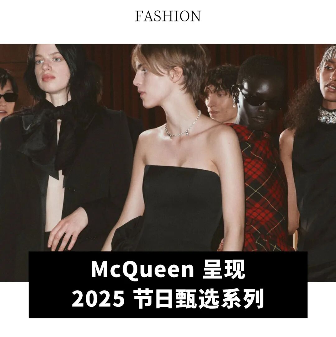 派对的灵魂人物,置身于恢弘的埃尔特姆宫之中(Eltham Palace),在标志性的配饰与鞋履的精妙搭配中定格风采。不拘泥于传统形式,夺目的金属装饰与华丽的质感在此碰撞,迸发出生动的活力。 深酒红天鹅绒与缎面礼裙,镶嵌珠宝的领口、以鲜艳欲滴的红色蛛网蕾丝点缀。水晶镶嵌的 Knuckle Clutch 手拿包,为节日庆典注入璀璨光芒。金属感 Skull Flower 手袋和节日气氛的缎面凉鞋以闪耀的水晶蝴蝶结华丽装饰。现代与古典在此交融,呈现全新风格。燕尾服剪裁与标志性的 McQueen 元素以颠覆性的创意融合:不对称的“MacQueen”格纹,饱含立体拆解细节的精致蕾丝。精裁设计旨在完成从街头穿搭到私密狂欢场景的微妙转换,混搭日装和露肤的水晶装饰针织单品。 珠宝设计强化了颠覆性的视觉效果与戏剧张力。精致的珍珠勾勒出标志的骷髅造型,Manta 手袋则是对档案馆经典廓形的完美再现,经雕塑般重塑后,饰以碎裂水晶吊灯与角色灵感吊坠。