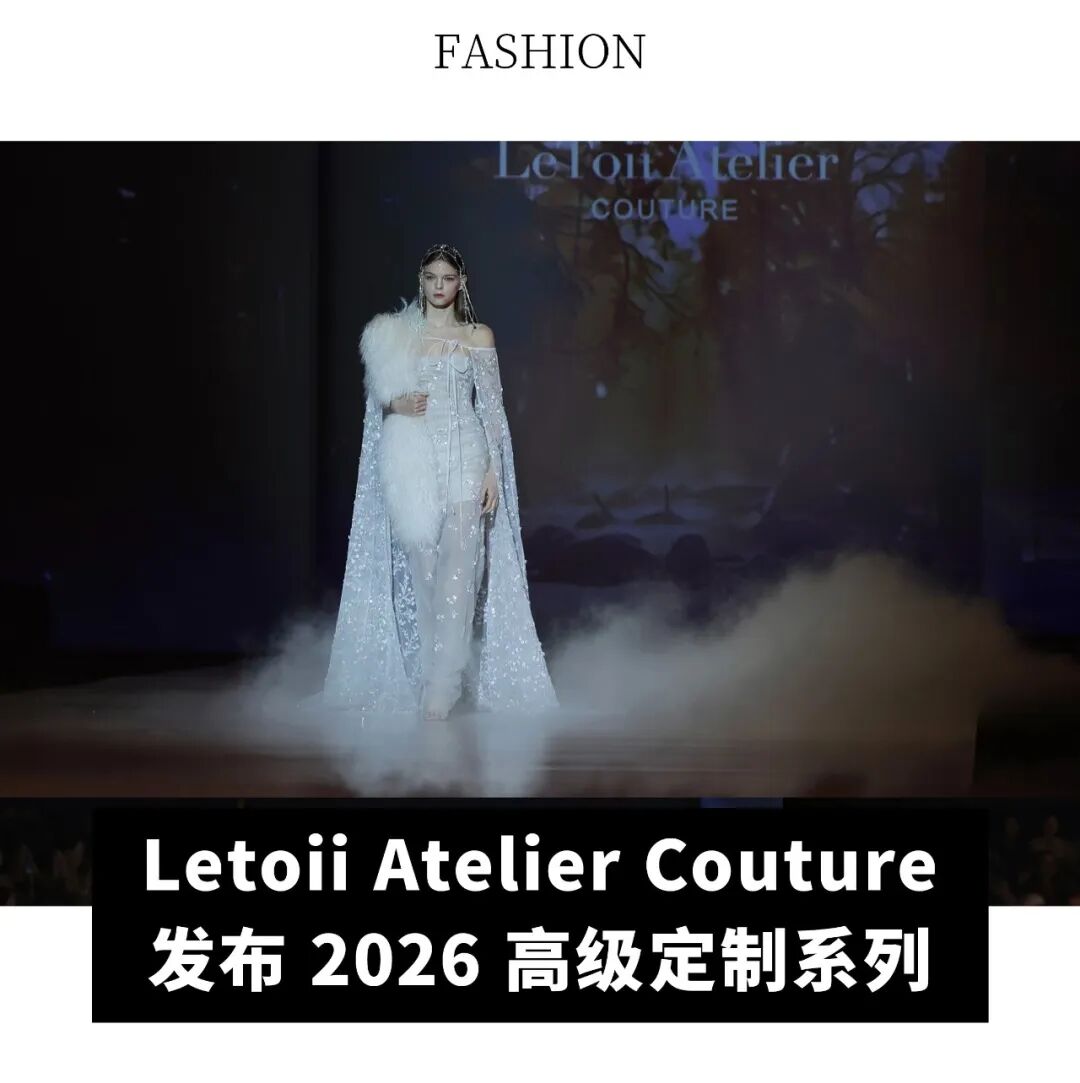 Letoii Atelier Couture 2026 高级定制系列,近期于上海时装周在诗意中登场。“Echoes Among Cedars 雪杉 吟”从森林的呼吸与静默中汲取灵感:层层轻透薄纱宛如雪地晨雾,手工缝珠蕾丝跟着光影闪烁,手工立体蕾丝花朵于冬日含蓄绽放,轻盈的手缝羽毛轻舞其间,彷彿雪杉间低语的秘密悄然流动。高级定制婚纱如晨光初醒,层层薄纱勾勒柔美轮廓,蕾丝若花瓣漫舞,如雪中花般幽微而坚韧。“A.W.A.K.E.N. 觉醒之境”系列以极致工艺重构记忆片段,彷若湖海交界处的夕阳粼粼,在静谧中缓缓生长。薄纱与剔透丝绸交织出若隐若现的幻境,珠钻与亮片闪烁光影,珍珠与水晶如星点缀其中。