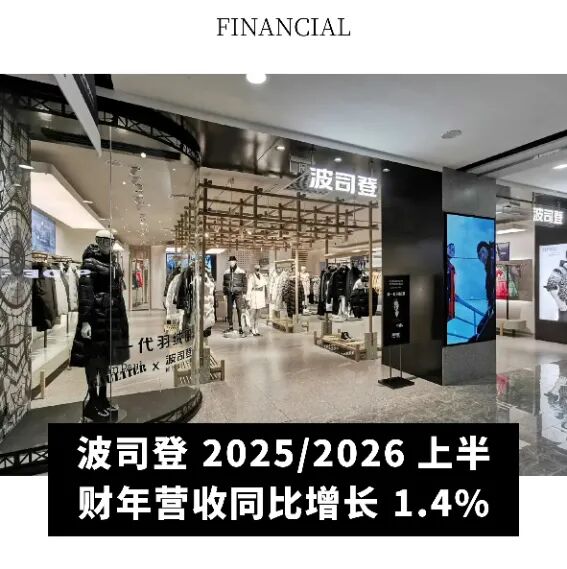 近日,波司登披露公司 2025/2026 上半财年业绩报告。财报显示,公司实现营业收入 89.3 亿元,同比增长 1.4%;归母净利润 11.9 亿元,同比增长 5.3%;毛利率维持在 50% 的高位水平,同比提升 0.1 个百分点;经营率提升 0.3 个百分点至 17%。其中,波司登羽绒服业务上半年实现收入 65.7 亿元,同比增长 8.3%,占总营收比重达 73.6%,截至报告期末,集团羽绒服业务的常规网点数量达 3558 家,较上一财年末净增 88 家。上半年自营渠道收入同比增长 6.6%,批发渠道收入同比增长 7.9%。