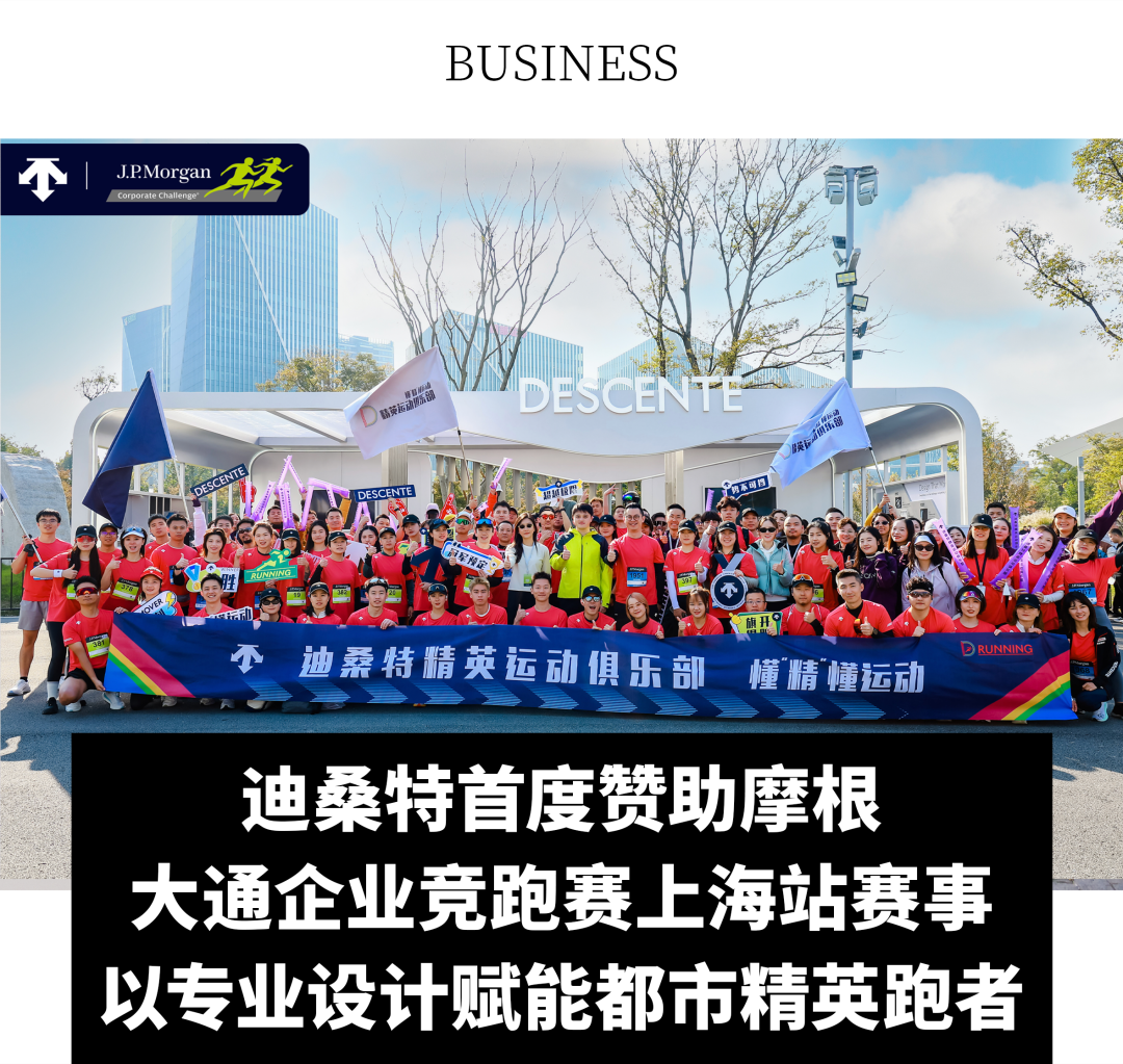 2025 年 11 月 25 日,高端专业运动品牌 Descente 迪桑特首次以赛事赞助商身份亮相2025摩根大通企业竞跑赛(J.P. Morgan Corporate Challenge®)上海站赛事,携手各界企业精英跑者共同开启这场运动精神与城市活力的城市路跑盛会。作为赞助商,不仅为摩根大通员工跑团提供专业跑步装备支持,更在现场打造限时品牌体验空间,组织内部员工跑团参与赛事,与数千名跑者一道奔跑,传递“以设计驱动运动精神”的品牌理念。