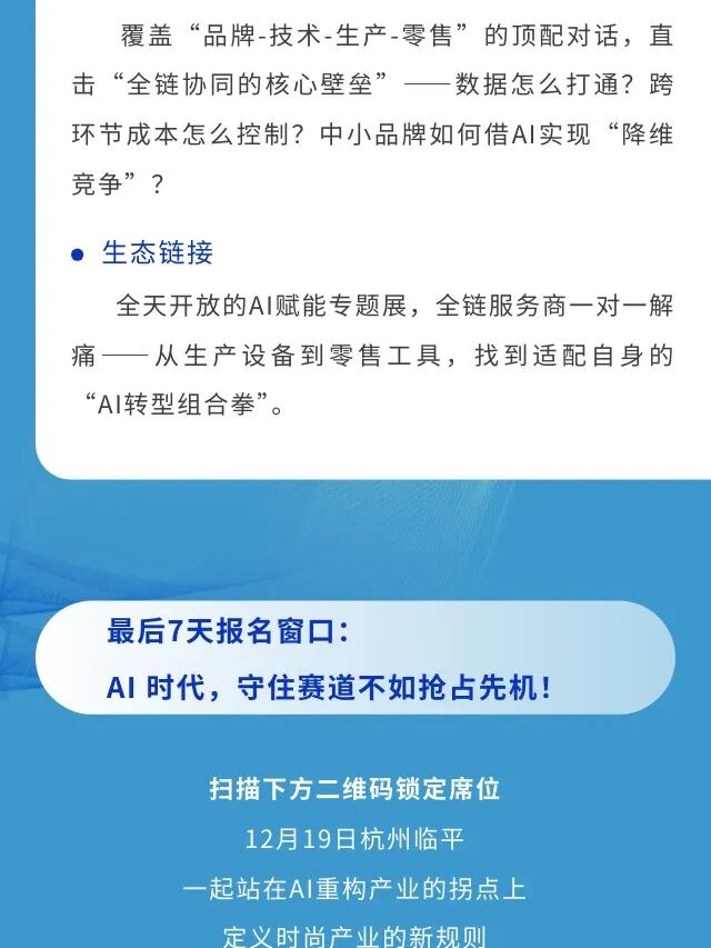 - 官宣!2025中国服装产业AI技术应用大会日程发布,用AI之光点亮时尚未来