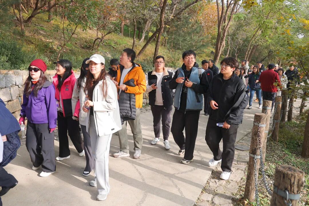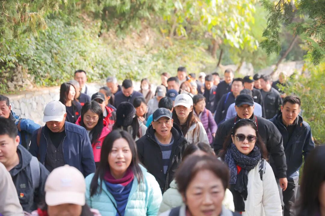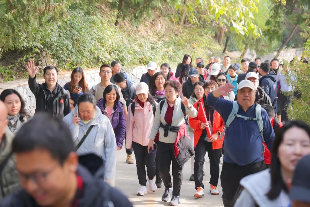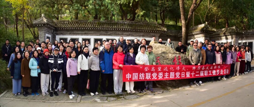 为纪念中国人民抗日战争暨世界反法西斯战争胜利80周年,10月31日,中国纺联党委、工会、团委、职工运动健身社以红色地标为课堂,在北京百望山举办“登高望远忆烽火,踔厉奋发启新程”主题党日暨第十二届职工健步走活动。本次活动将红色教育与体育锻炼深度融合,引导全体职工在健步中追寻那些镌刻在山河岁月中的红色记忆,感悟初心,汲取力量。中国纺联党委书记、会长孙瑞哲,副会长杨兆华、阎岩,党委副书记、纪委书记朱超,纪委原书记王久新以及中国纺联各单位各部门领导、干部职工400余人参加了此次活动。活动起点设于北京百望山“砥柱”刻石处。寓意着在党的坚强领导下,中国纺联全体党员干部职工将以如磐的信念和坚定的步伐,在新时代的征程中砥砺前行。中国纺联党委副书记、纪委书记朱超进行了活动出发前的致辞。她表示,站在历史与现实的交汇点上,以健步走的形式重走英雄路,既是缅怀先烈、传承红色基因的生动实践,更是激励新时代纺织人在新征程上“不忘初心、牢记使命”的精神洗礼。让我们以脚下这片热土为起点,在登高中感悟信仰的高度,在跋涉中丈量责任的厚重,在携手前行中凝聚奋进的力量!我们将以此次活动为新起点,以更加饱满的热情、更加务实的作风,且趁秋光,共赴山海,共同谱写中国纺织现代化建设的新篇章!伴随着孙瑞哲书记出发的号令,2025年中国纺联党委“登高望远忆烽火,踔厉奋发启新程”主题党日暨第十二届职工健步走活动正式开始。在黑山扈战斗纪念园,大家庄严肃立,聆听了一堂生动的微党课。讲解员详细讲述了88年前平西抗日游击队在中国共产党领导下于黑山扈地区与侵略者浴血奋战的英勇事迹。革命先辈们在这里创造的用轻武器击落日寇敌机的抗战奇迹,向全世界展示了中国人民天下兴亡、匹夫有责的爱国情怀,视死如归、宁死不屈的民族气节,不畏强暴、血战到底的英雄气概,百折不挠、坚韧不拔的必胜信念,他们身上闪烁的伟大抗战精神让在场同志深受触动。广大职工以饱满的精神踏上秋日山林步道。秋风送爽,层林尽染。在欣赏北京金秋美景的同时,也增进了中国纺联各部门各成员单位的相互交流,提升了团队的凝聚力。